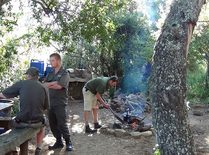 Préparatifs pour nuit en brousse avec les rangers et l'équipe anti-braconnage.
